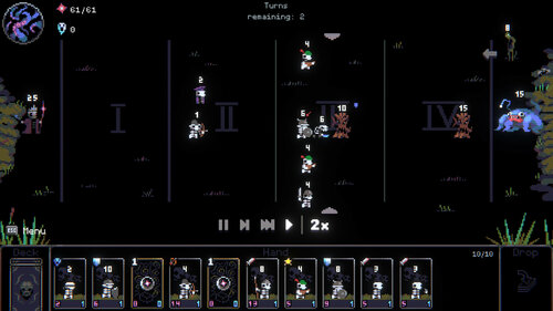 Rozgrywka skupia się na bitwa w systemie turowym z elementami budowania talii. Gracze dysponują zestawem czaszek, które w trakcie starć przywołują różne jednostki, od zwykłych szkieletów po silniejsze i bardziej unikalne bestie. Dobór talii oraz kolejność wykorzystania kart mają wpływ na przebieg potyczek.