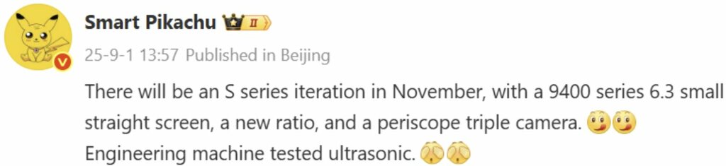 Znany chiński leakster Smart Pikachu donosi, że vivo S50 Pro Mini doczeka się premiery w okolicach listopada 2025 roku. To zaledwie 2 miesiące po chińskiej premierze vivo X300. Smartfon będzie kontynuować tradycję poprzednika i nadal będzie kompaktem.