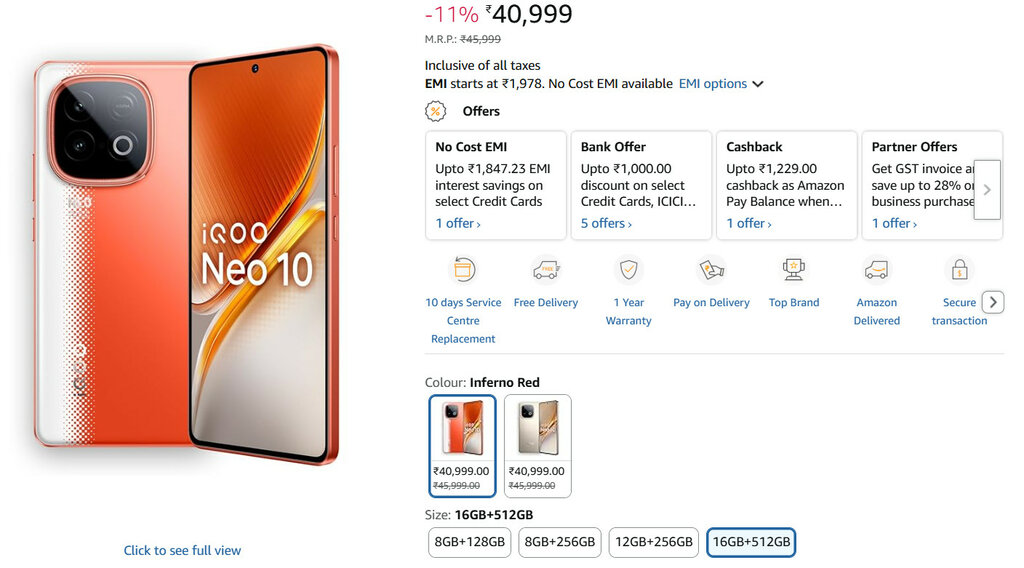 A ta jest w Indiach po prostu śmieszna. Podstawowy model iQOO Neo 10 8/128 GB kosztuje teraz w promocji na indyjskim Amazonie 31999 rupii indyjskich, a więc ~1326 złotych według dzisiejszego kursu walut. Za topowy wariant 16/512 GB trzeba zapłacić 40999 INR, czyli ~1699 złotych.