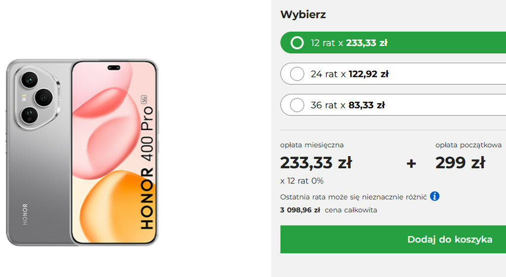Minusy? Honor 400 Pro startuje z Androidem 15, a nie najnowszym 16 oraz ma nie 7, lecz „tylko” 6 obiecanych aktualizacji systemu. Jego cena w Plusie bez umowy zaczyna się od niecałych 3099 złotych w ofercie na 12 rat.