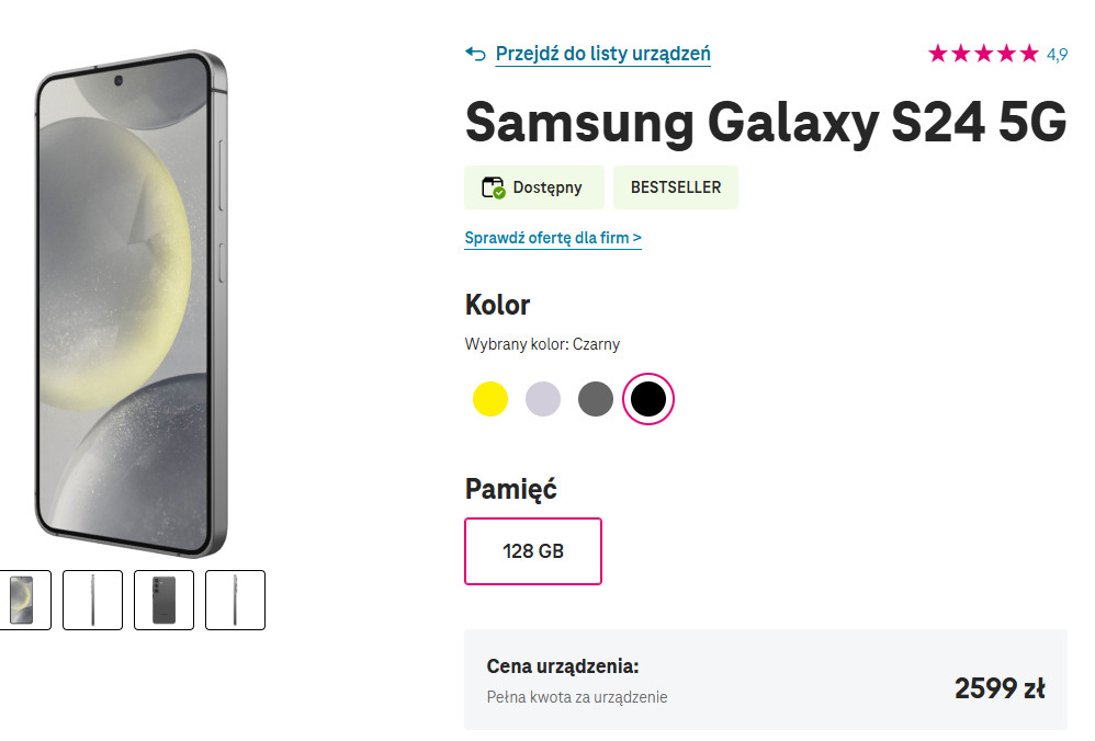 W tym celu przeanalizowałem dostępne smartfony w ofertach sieci Wielkiej Czwórki, a więc Orange Polska, Play, Plus i T-Mobile Polska. Samsung Galaxy S25 FE jest oferowany przez każdego z tych operatorów, ale w ich ofercie znajdziesz jeszcze ciekawsze (i tańsze) urządzenia.
