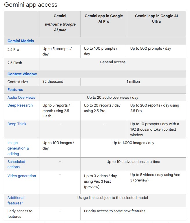 Jak dotąd mieliśmy w usługach Gemini nic niemówiące określenia, jak „najlepszy dostęp” czy „wersja poszerzona”. Ale w końcu pojawiły się konkrety, pokazujące, ile jakich akcji możesz wykonać dziennie.