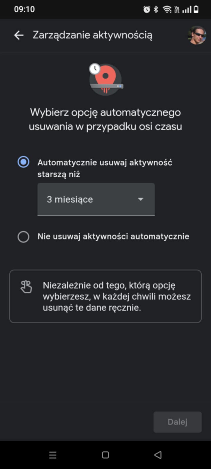 Gdy jednak ustawiamy tworzenie kopii zapasowej, można wybrać, po jakim czasie ma być automatycznie usuwana zapisana aktywność – lub zablokować jej usuwanie.