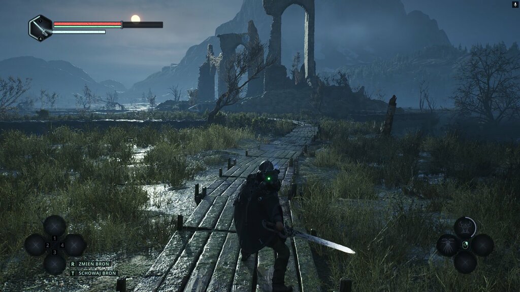 Problematyczne momentami jest także działanie kamery. Identycznie, jak w souls-like’ach możecie namierzać przeciwników. Kamera często wyłapuje jednostkę, na którą nawet nie patrzycie. Zdarza się też, że w sytuacjach dynamicznych ucieka, ograniczając pogląd na sytuację. W przypadku starć w ciasnych pomieszczeniach również się gubi. Czemu by w takim wypadku nie zrezygnować z tej opcji? No musicie wiedzieć, że walka bez namierzania to syzyfowa praca.