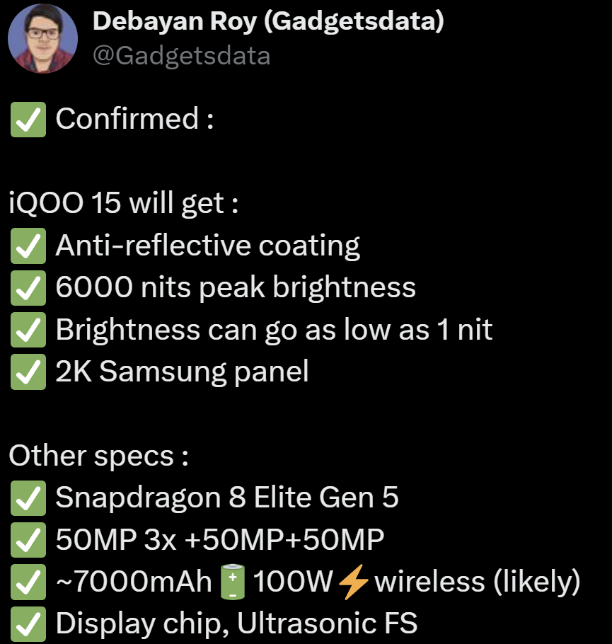 iQOO 15 zdradza specyfikację przed premierą