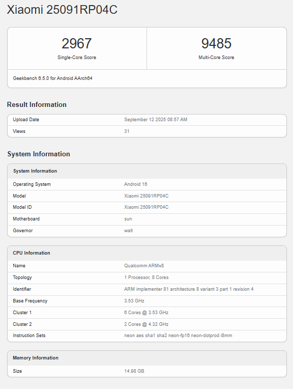 Nowy Xiaomi Pad 8 Pro zastąpi obecnego Xiaomi Pad 7 Pro, który dostępny jest w sprzedaży za około 2400 złotych. Aktualniejsza generacja pojawiła się w bazie Geekbench pod nazwą kodową 25091RP04C. Dzięki temu wiemy, że tablet będzie napędzany procesorem Snapdragon 8 Elite i zyska wyraźny skok mocy obliczeniowej.