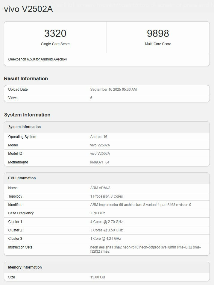 Na początek procesor, jakim będzie zmierzający ku premierze MediaTek Dimensity 9500. Poniżej możecie zobaczyć, jakie wyniki jest w stanie zaoferować w popularnym benchmarku, jakim jest Geekbench. To w połączeniu z 16 GB pamięci operacyjnej i zapewne przynajmniej 256 GB pamięci wewnętrznej.