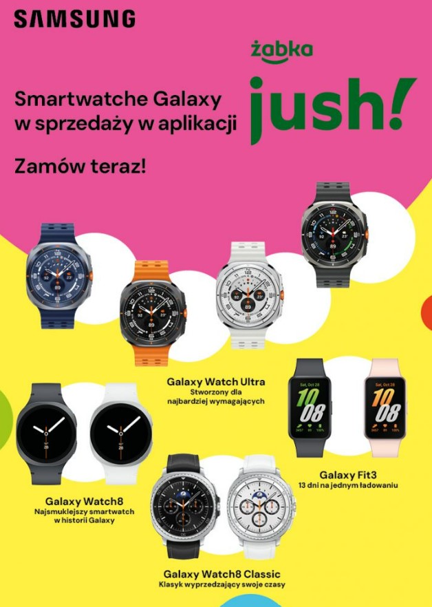 Od 16 września w aplikacji Żabka Jush pojawiła się nowa kategoria produktów – elektronika. Użytkownicy mogą zamówić najnowsze smartwatche z serii Galaxy Watch8, w tym Galaxy Watch8, Galaxy Watch8 Classic i Galaxy Watch Ultra, a także sportową opaskę Galaxy Fit3. Urządzenia zostaną dostarczone pod drzwi w czasie porównywalnym z zamówieniem obiadu. To pierwsza tego typu opcja w Polsce, które pokazuje, że szybkie zakupy online zaczynają obejmować także elektronikę.