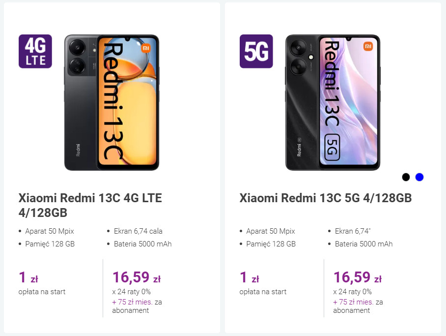 Gorzej, jak wówczas nie będzie w innym sklepie modelu 5G, a jedynie „Xiaomi Redmi 13C”, którego niektórzy mogą wziąć za telefon 5G, a w istocie będzie to tańszy i gorszy smartfon 4G. Jak na ironię, w niektórych miejscach mogą one kosztować… tyle samo, np. Play oferuje je w swoim abonamencie w identycznej cenie: