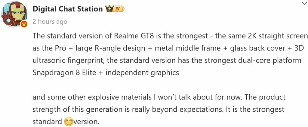 Niezastąpiony Digital Chat Station podzielił się specyfikacją realme GT 8. Zdaniem popularnego leakstera smartfon będzie najlepszym z podstawowych edycji flagowców w tym roku – miano ich zabójcy wydaje się tu jak najbardziej na miejscu. Do tego pojawi się tu sporo cech z topowego wariantu Pro.