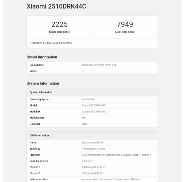 Procesorem Redmi K90 będzie Snapdragon 8 Elite, który cieszy się może nie najwyższą wydajnością, ale na pewno też nie najmniejszą. Wyniki w testach Geekbench wskazują na 2 436 punktów w teście single-core oraz 8 346 punktów w multi-core. Bez wątpienia to solidny wynik.