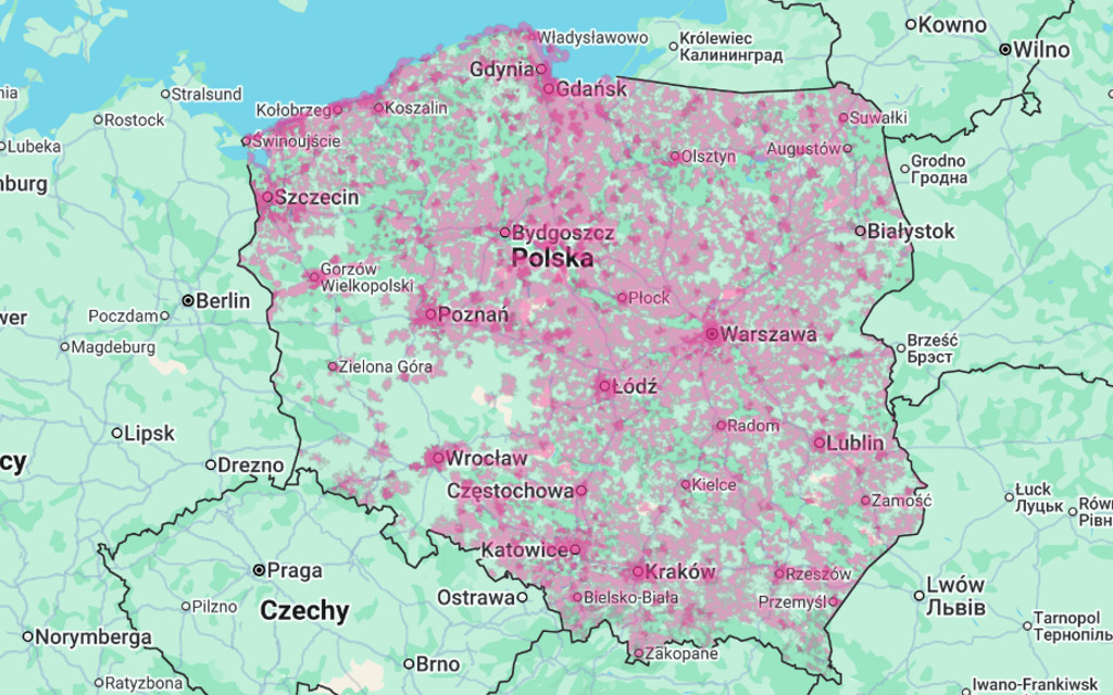 Dawno temu Play nie grzeszył mocnym zasięgiem, ale te czasy to już przeszłość. Dziś operator mocno inwestuje w swoją infrastrukturę, na którą przeznaczył w latach 2020-2024 aż 6,1 mld złotych. Play nie informuje wprost o liczbie nadajników z 5G, ale w ostatnich 2 latach postawił ich przeszło 2000, poza tym powoli zastępuje 3G nowszymi standardami LTE i właśnie 5G. Wiemy, że 5G Play dociera do ponad 80% populacji kraju.