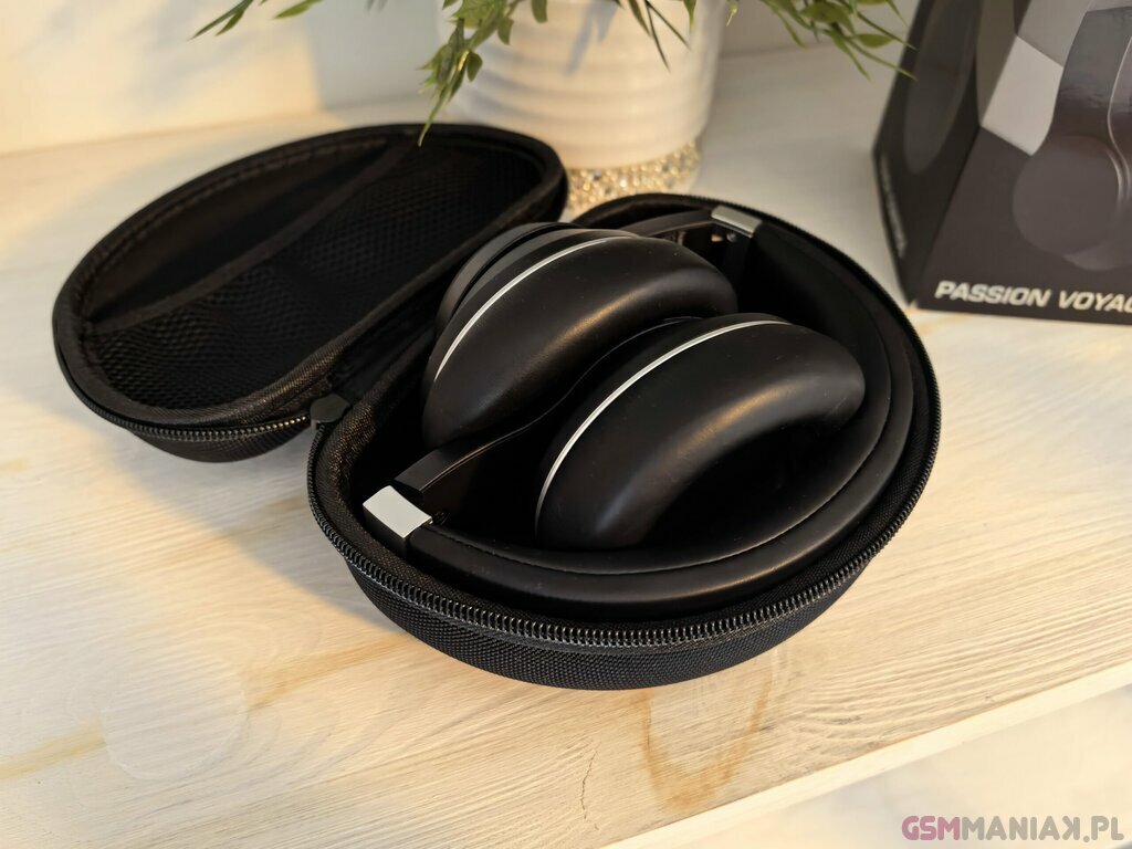 Praktycznym rozwiązaniem jest możliwość złożenia nauszników, co ułatwia transport. Szkoda tylko, że nie są obrotowe, bo przenoszenie ich na szyi nie jest zbyt wygodne. Doceniam natomiast obecność etui w zestawie. Nie jest ono tak eleganckie jak w droższych modelach, ale chroni słuchawki i ma kieszonkę na przewody. To rozwiązanie, którego często brakuje w tańszych konstrukcjach.