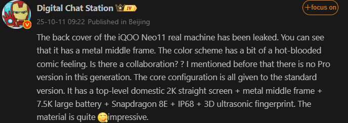 W sieci przed oficjalną premierą pokazało się zdjęcie przedstawiające iQOO Neo 11 na żywo. Superśredniak oparty na eks-flagowym procesorze moim zdaniem śmiało może rywalizować o tytuł najładniejszego telefonu tego roku.