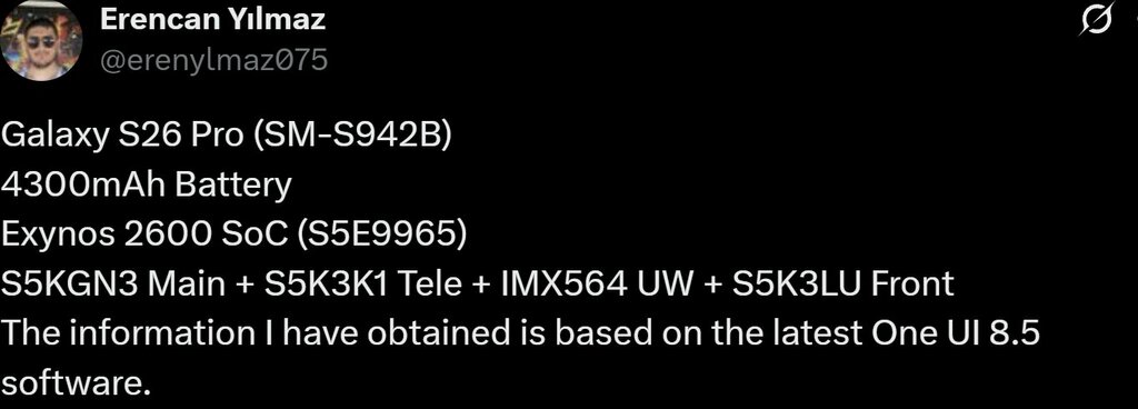 Samsung ma za sobą – delikatnie mówiąc – średnio udane flagowce. Najpierw chciał pozbyć się Plusa, bo słabo się sprzedaje. Później okazało się, że Edge nie obchodzi nikogo tak bardzo, że Plus jest przy nim bestsellerem. Teraz w sieci mamy już sporą część specyfikacji Samsunga Galaxy S26 Pro i na ten dopisek zasługuje najmniej ze wszystkich flagowców.