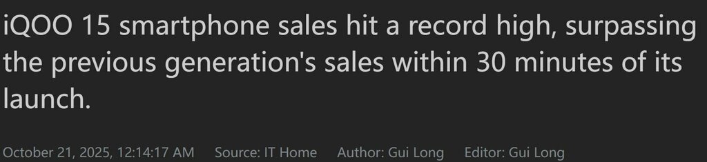 Ku zaskoczeniu Samsunga i Apple użytkownicy potrafią docenić dobrą specyfikację w niskiej cenie. Przykładem jest sprzedaż iQOO 15, który do ustanowienia rekordu potrzebował 30 minut. Przypomina to najlepsze czasy Xiaomi w Polsce.