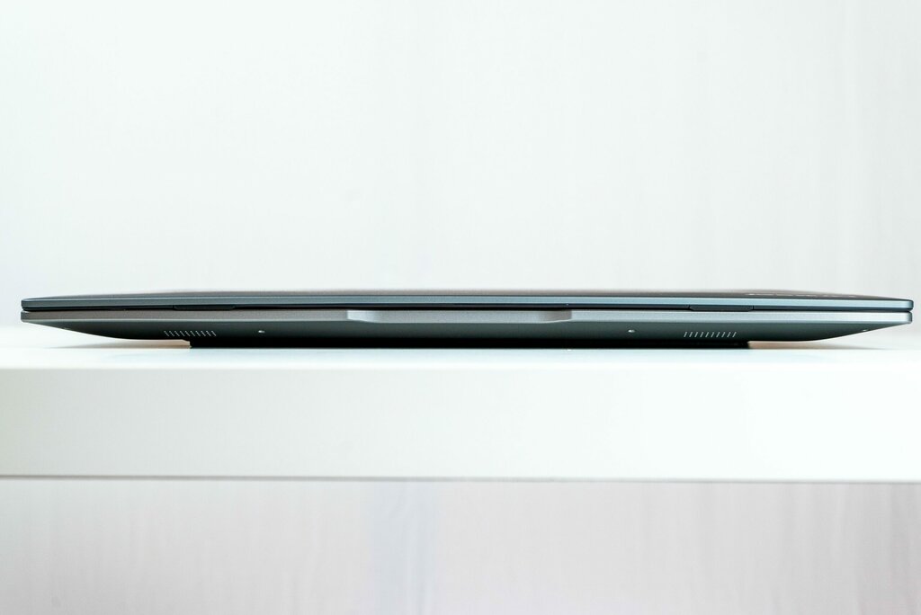 Nie jest oczywiście idealny. Mocno przeciętnie korzysta się z klawiatury, a głośniki, czy mikrofony są zwyczajnie słabe. Średni jest również zastosowany dysk SSD, co widać w praktycznym teście. Procesor osiąga zawrotne temperatury pod mocnym obciążeniem, co powoduje throttling – można było dać teoretycznie słabszy, ale mniej prądożerny układ. Ten jednak zżera także mocno baterię, która jednak nie jest najbardziej pojemną w swojej kategorii.