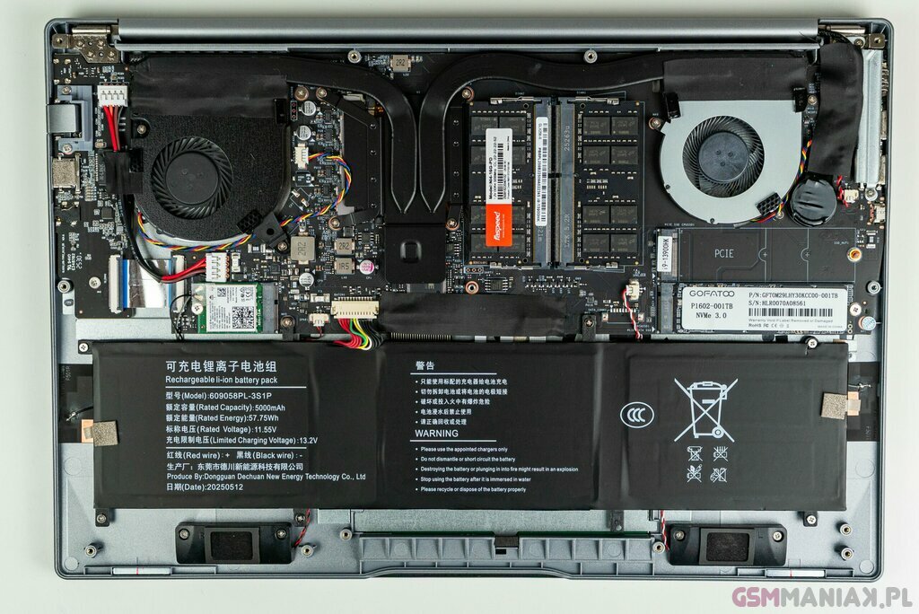 Środek jest nieco pusty, co zresztą widać na zdjęciach. Można było teoretycznie pokusić się zapewne o większą baterię, czy tego typu zmiany. Z drugiej strony, bez problemu wymienimy RAM, dołożymy kolejny dysk SSD, czy wymienimy kartę sieciową. No i kwestia ewentualnego czyszczenia oraz wymiany pasty termoprzewodzącej także nie powinny być problematyczne.