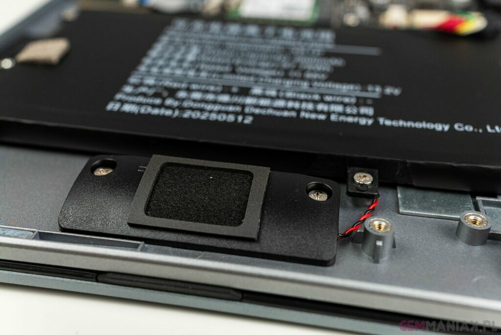 Zacznijmy zatem tutaj od głośników. Na pokładzie mamy dwa, skierowane w dół, co oczywiście może wpływać na to, jak końcowo grają. A grają… źle. Stosunkowo cicho, basu praktycznie wogóle nie ma, nadają się jako tako jedynie do tego, by posłuchać sobie jakiegoś podcastu – a i tutaj wolałbym jakieś tanie słuchawki.