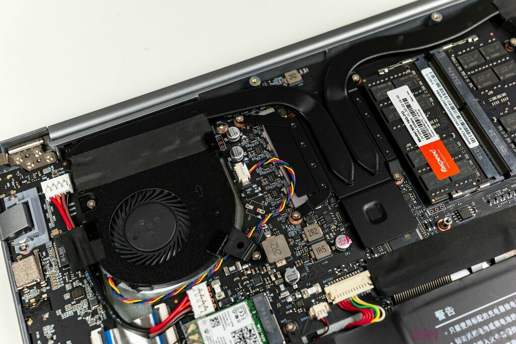 Przede wszystkim mamy tutaj bardziej rozbudowane chłodzenie, składające się co prawda z takiej samej ilości ciepłowodów, ale posiadające 2 wentylatory, a także 2 radiatory. Sam proces zdjęcia dolnej klapy jest banalnie prosty, wystarczy odkręcić śrubki i leciutko podważyć w okolicach zawiasu ekranu.