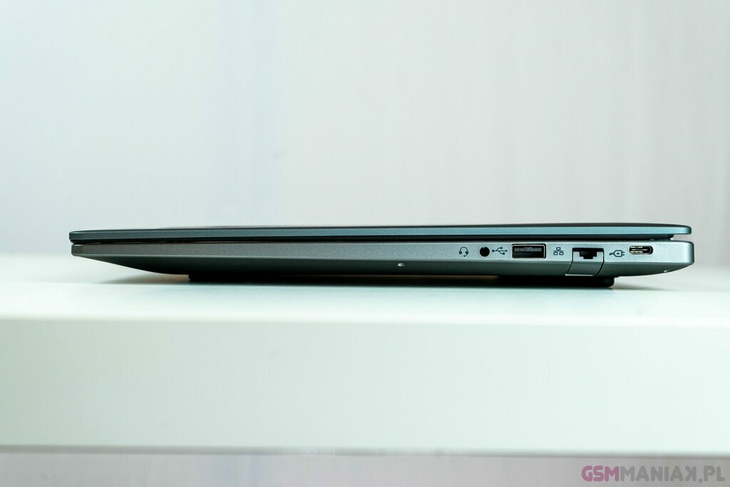 Mamy więc łącznie 5 portów USB, dwa wyjścia obrazowe (HDMI + USB-C), dwa złacza USB-C obsługujące ładowanie, RJ45 i wyjście + wejście audio — czego chcieć więcej w takim laptopie?