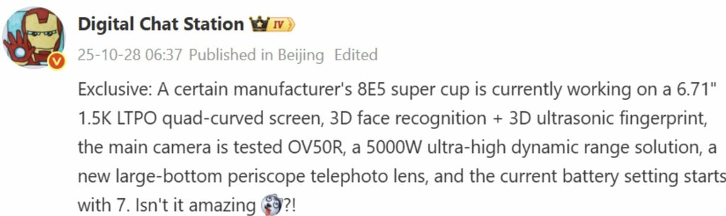 Co ciekawe sam wyświetlacz nie jest przesadnie wielki – 6.71 cala przy ramkach cienkich na miarę 2025 roku to nic pokaźnego. Ponadto krawędzie mają być zagięte z czterech stron, co przy obecnym sposobie projektowania flagowców jest wręcz ewenementem.