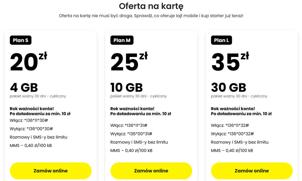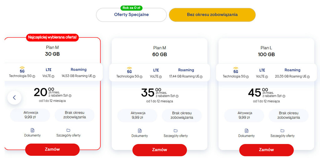Przejdźmy teraz do klasycznych ofert na doładowanie konta (prepaid).