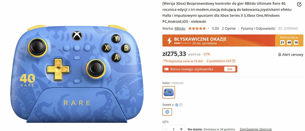 Poza tym kapitalnym rzutnikiem dużo taniej możesz też kupić pad do Xboxa. Ten powstał z okazji 40-lecia marki i na premierę swoje kosztował. Na szczęście w promocji możesz kupić go znacznie taniej, a z kuponem rabatowym BG7a03d6 staniał do poziomu 246 złotych. Według danych sklepu to najniższa cena w historii, a do tego możesz cieszyć się darmową wysyłką.
