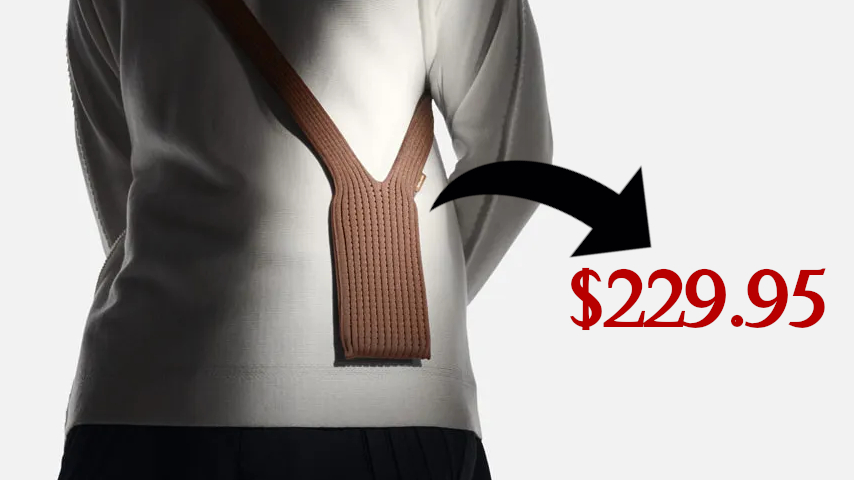 To, co widzieliście w powyższym, oraz widzicie z bliska w poniższym obrazku, to właśnie owo akcesorium. Jak myślicie, ile może kosztować taka prosta, bo przecież to nie „rocket science”, saszetka na telefon. Oczywiście pamiętając o tym, że mówimy o produkcie od Apple. 100? Może 200? No, prawie tak, bo mniejsza wersja została wyceniona na niespełna 150 dolarów, a większa – 230 dolarów amerykańskich. Rozumiecie, prawie 1000 złotych za kawałek materiału.