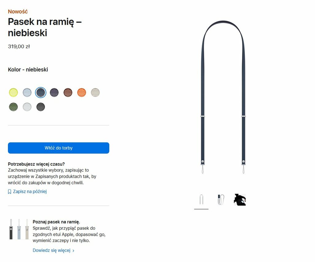 Kosztuje 319 złotych i jest… najzwyklejszym paskiem na ramię. Nie wyróżnia się trwałością, jakością wykonania, niczym poza tym, że jest od Apple. Tak właśnie robi się marketing, nieważne co wypuścisz, i tak się to sprzeda. Raczej Amerykanie nie narzekają na inwestycję, bo produkcja tego u naszych sąsiadów z Dalekiego Wschodu to zapewne grosze. I cyk — znowu przebitka wlatuje.