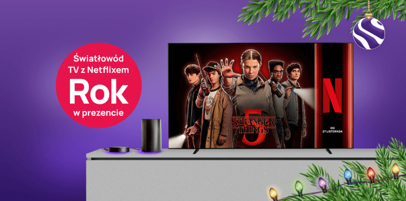 Darmowy Netflix jest jak najbardziej możliwy, wystarczy zamówić świąteczną ofertę promocyjną sieci Play. Fioletowy operator oferuje Netflixa w prezencie ze swoim internetem światłowodowym.