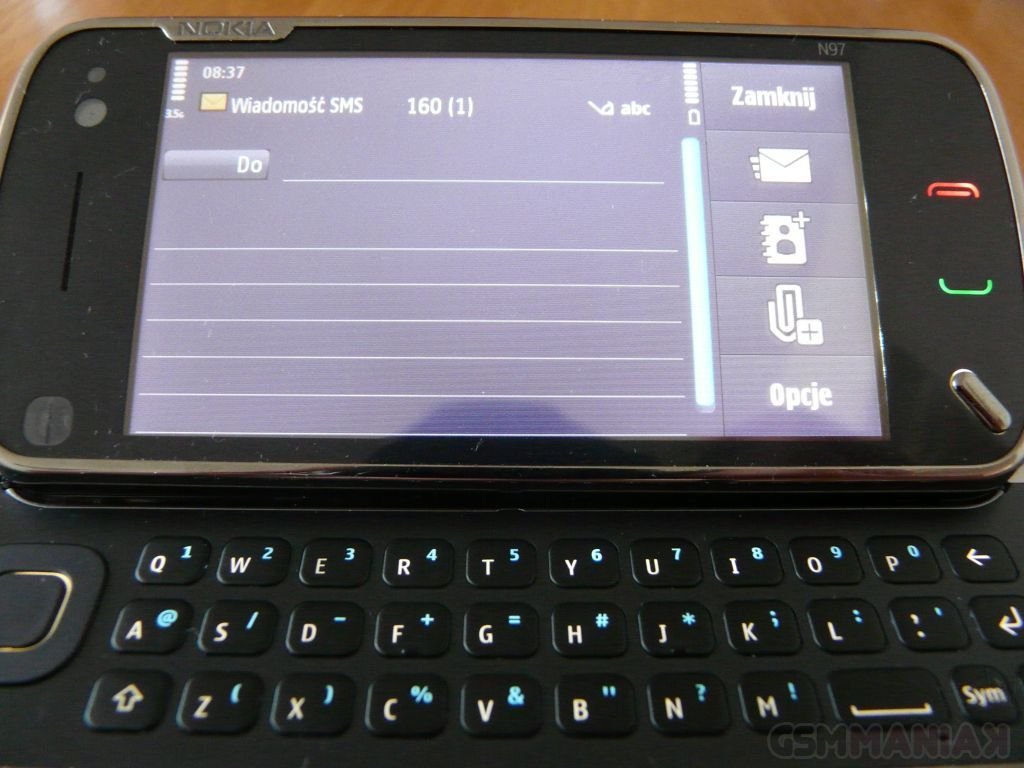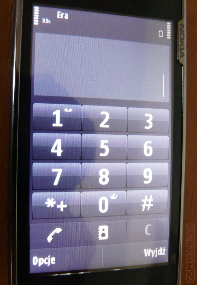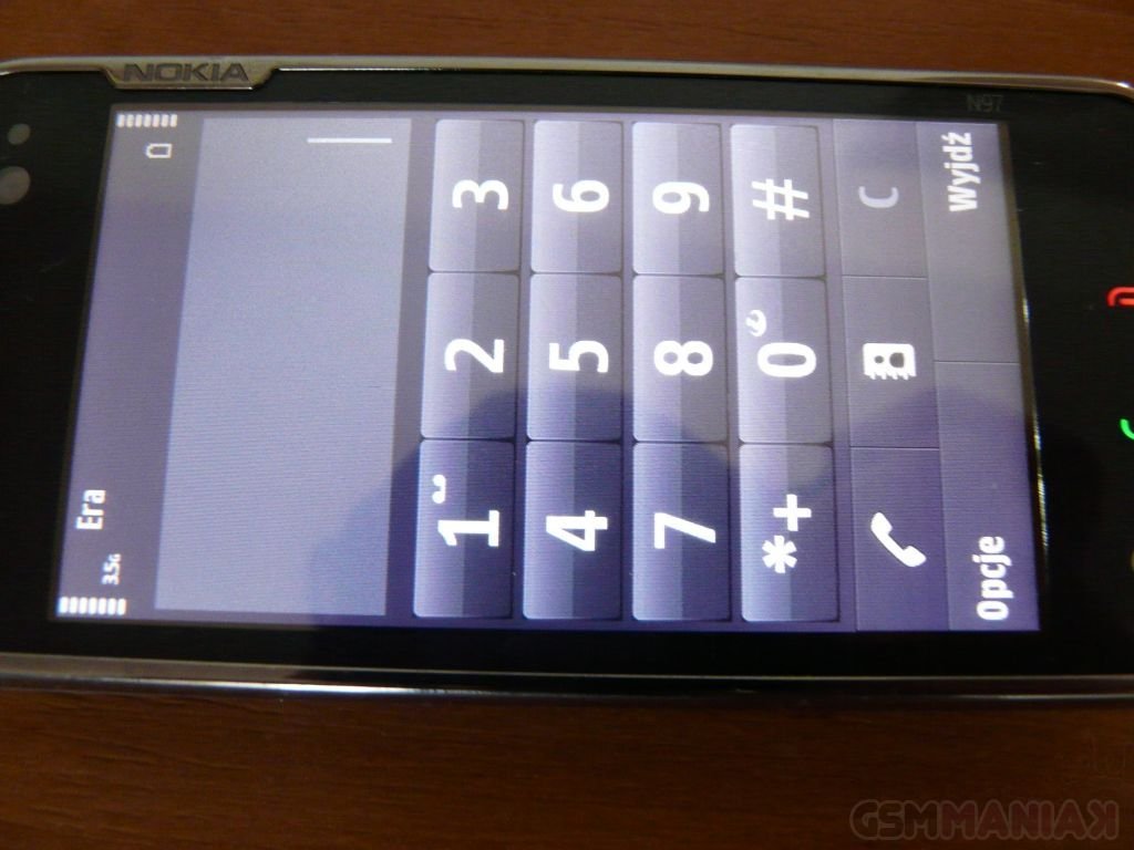 Pozostając przy wprowadzaniu tekstu. Warto wspomnieć o klawiaturze ekranowej. Ta w zależności od rodzaju wprowadzanych informacji przybiera dwie formy. Podczas pisania wiadomości mamy do dyspozycji zajmującą prawie cały ekran klawiaturę alfanumeryczną z dużymi przyciskami i sygnalizacją liter, znaków bądź cyfr w danym momencie wybieramy. Z kolei podczas wpisywania numeru telefonu, zobaczymy prostą klawiaturę numeryczną. Niestety, w przeciwieństwie do 5800 XpressMusic, N97 nie posiada ekranowej klawiatury QWERTY a szkoda, bo czasami naprawdę mogłaby się ona przydać (w szczególności gdy jedziemy tramwajem lub gdy chcemy coś szybko napisać bez konieczności rozsuwania telefonu).