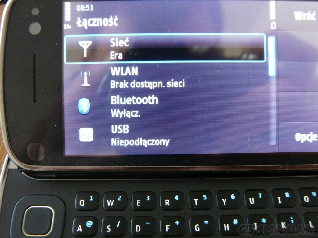 Chyba najmocniejszą stroną nowego high-endu fińskiej firmy jest wysuwana klawiatura QWERTY, dlatego chciałem poświęcić jej oddzielny akapit. Pisze się na niej po prostu świetnie. Podświetlane przyciski ułożone są w trzech rzędach i oddzielone od siebie dużymi odstępami. Dzięki czemu, (po przyzwyczajeniu się do klawiatury) pomyłki są rzadkością nawet podczas pisania dłuższych maili lub wiadomości. Cyfry i znaki specjalne ukryte są pod przyciskami liter, dlatego też gdy chcemy je wprowadzić musimy wcisnąć przycisk funkcyjny (nie jest to w żadnym stopniu uciążliwe i bardzo szybko można się przyzwyczaić). Do tego z lewej strony znajdziemy zastępujący standardowe kursory czterokierunkowy pad ze środkowym przyciskiem „OK”. Muszę przyznać, że pod względem klawiatury Nokia bije na głowę Xperię X1 Sony Ericssona.