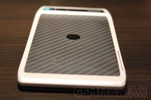 Z tyłu urządzenia, powyżej kevlarowej osłony znajduje się obiektyw aparatu fotograficznego, lampa błyskowa LED i głośnik urządzenia. Takie umiejscowienie aparatu jest bardzo wygodne, podczas robienia zdjęcia trzymając telefon w jednej dłoni palec wskazujący opiera się poniżej zgrubienia obudowy, dzięki łatwiej jest operować kciukiem i nie ma ryzyka, że sami zasłonimy sobie kadr.