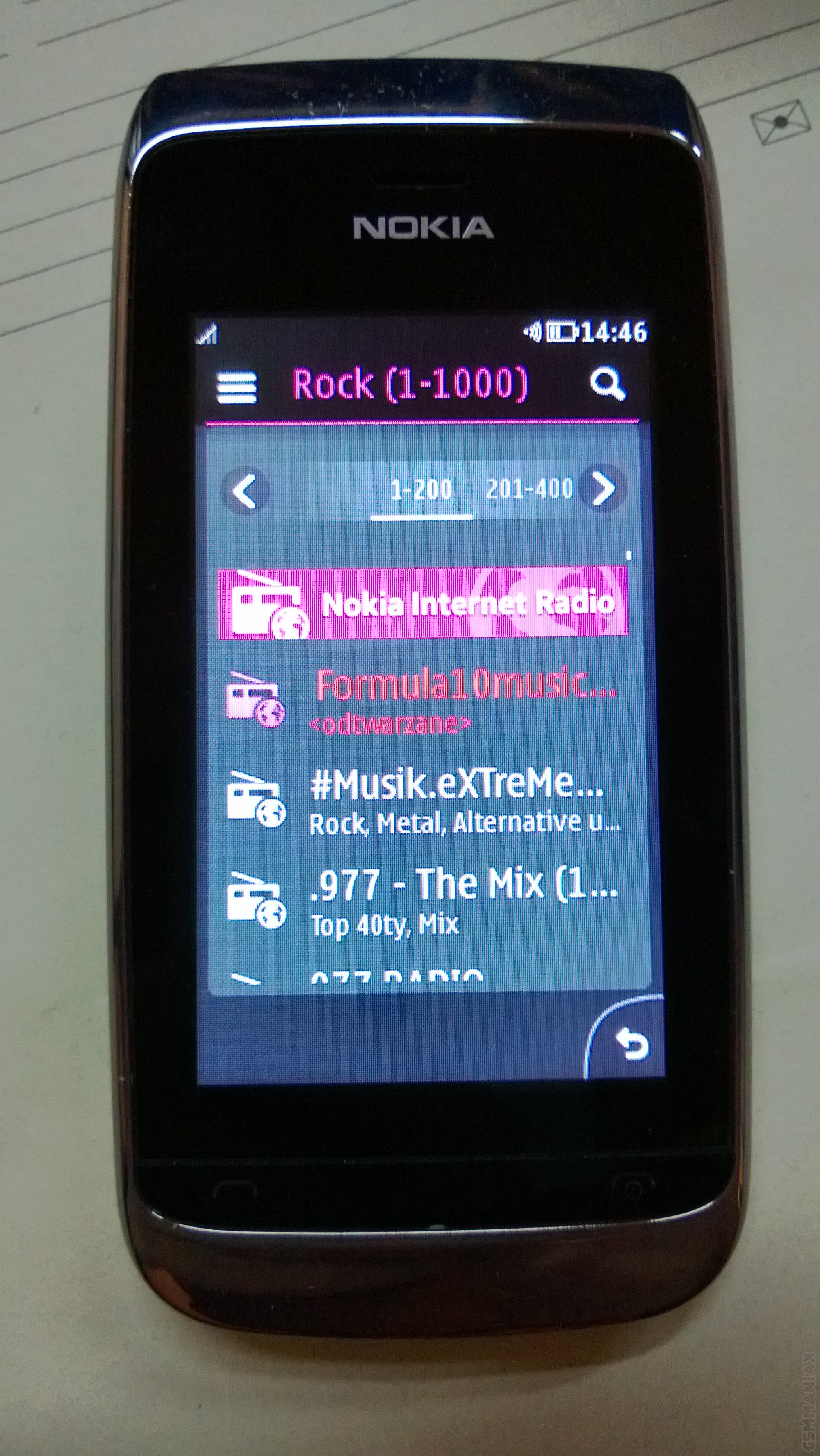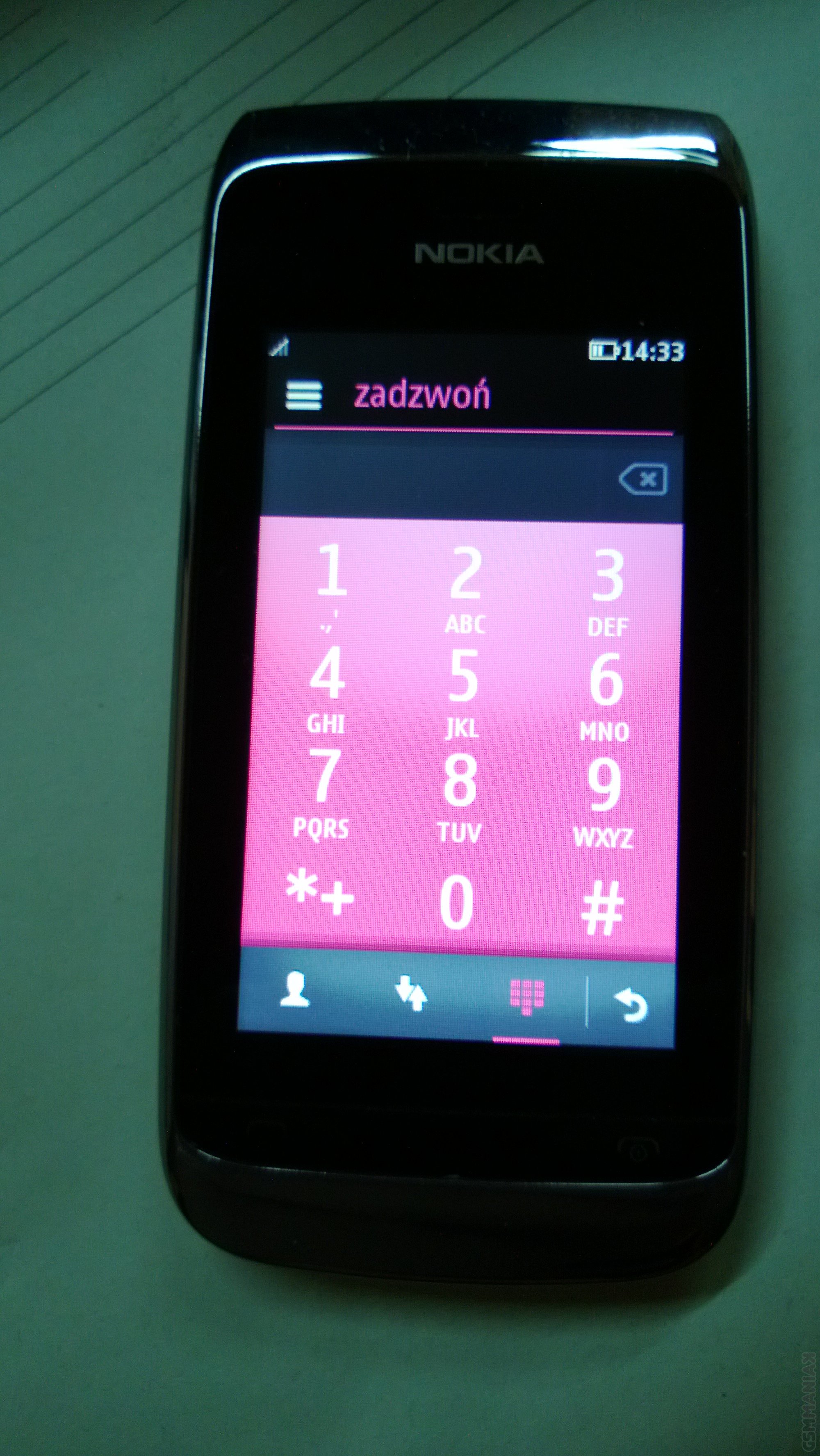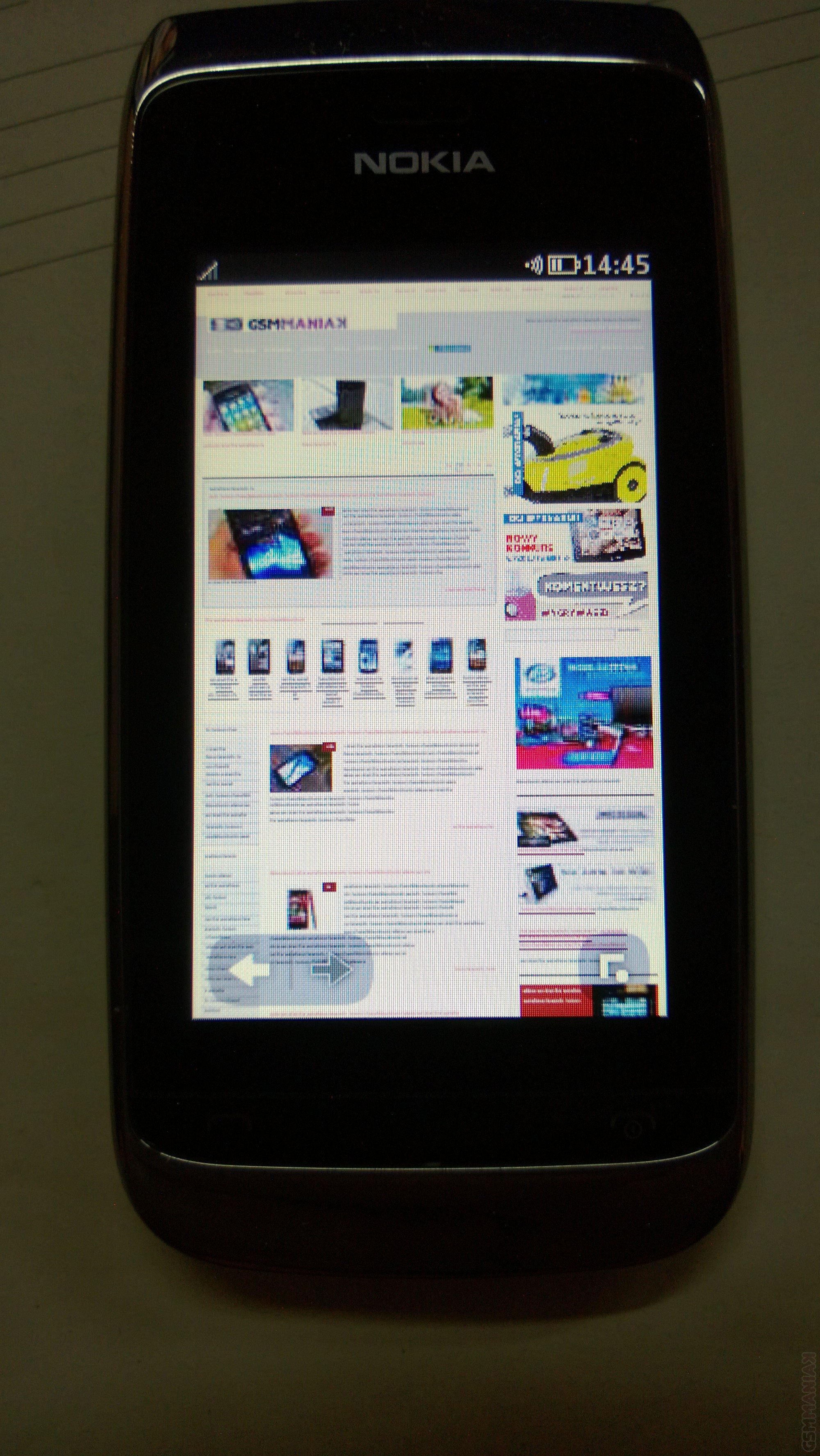 3-calowy ekran pracujący w rozdzielczości 240×400 pikseli sprawuje się poprawnie. Finowie wreszcie nauczyli się montować w telefonach z linii Asha całkiem niezłe ekrany, które nie wymagają już niemal uderzania palcem w ekran, aby osiągnąć pożądany efekt. Ku mojemu zdziwieniu, 3-calowy ekran wyświetlający 64 tysiące barw może pochwalić się całkiem dobrymi kątami widzenia, co w budżetowym urządzeniu zawsze trzeba uznać za zaletę. Brawo, Nokio, odrobiłaś zadanie domowe.