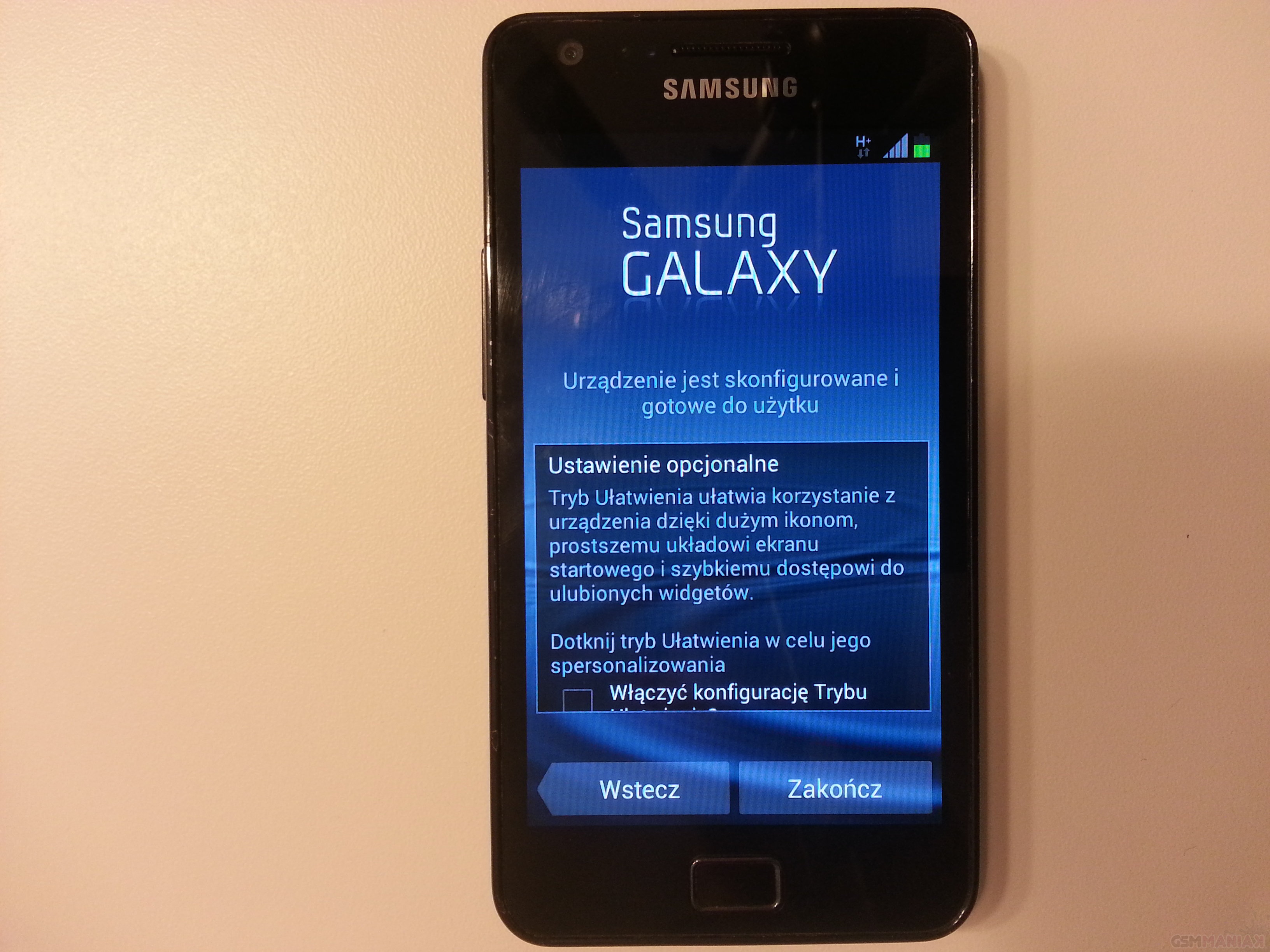 Na końcu procesu konfiguracji widzimy na ekranie okno z możliwością włączenia Trybu Ułatwienia. Tryb ten pozwala na uproszczenie interfejsu urządzenia i jest on wskazany dla początkujących użytkowników, którzy mają obawy czy ze wszystkim sobie poradzą.