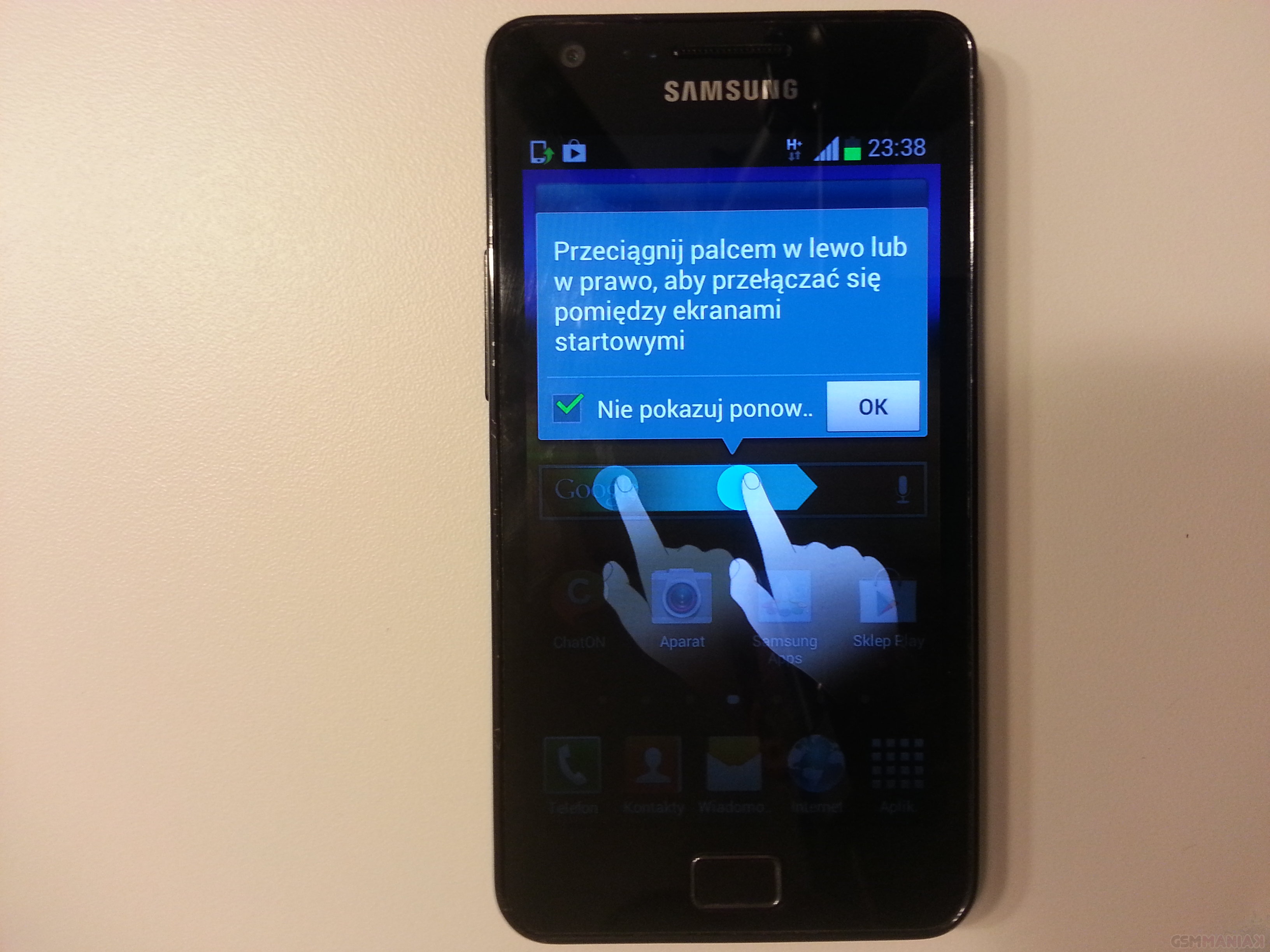 Na kolejnych zdjęciach widzimy kilka użytecznych informacji od samouczka Samsunga związanych z poruszaniem się po ekranie startowym, pasku powiadomień i aplikacjach. Te trzy wymienione przeze mnie elementy są głównymi w funkcjonowaniu Androida. Wszystkie te funkcje są opiszemy dokładnie w kolejnych częściach tego cyklu jednak pozwolę sobie, krótko o nich wspomnieć.