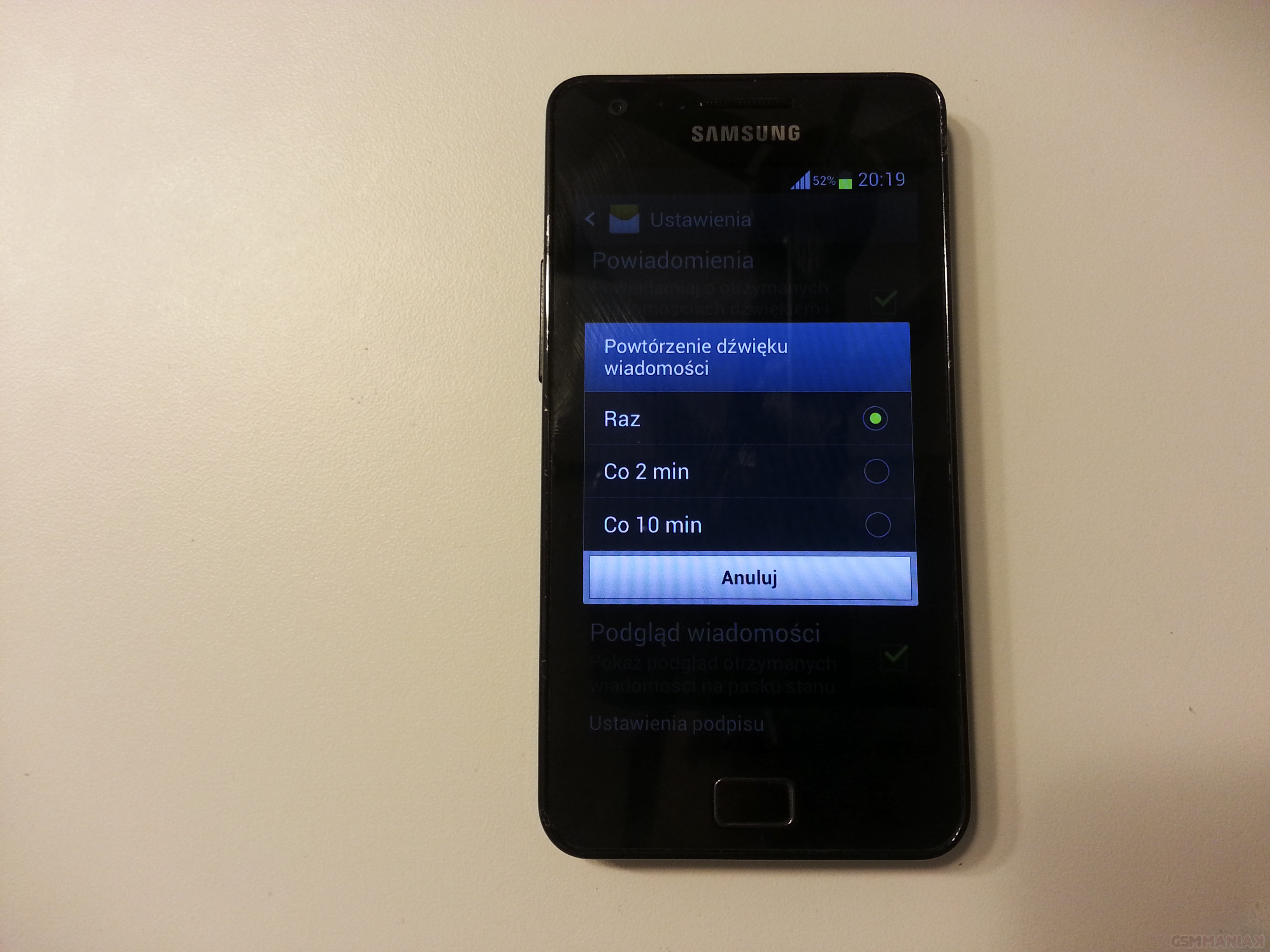 Zarówno ustawienia dźwięku czy wibracja od kilku lat jest standardem. Fajną funkcją, która sądzę jest również dodatkową w Androidzie z Touchwiz jest opcja powtarzania. Ustawiamy, że dźwięk po otrzymaniu wiadomości ma być powtarzany raz, co 2 lub 10 minut. Przydatne jeśli przy pierwszym powiadomieniu nie usłyszymy dzwonka. Nie jest to nowa funkcja bo moja poczciwa Motorola E398 miała takie rozwiązanie ale miło, że smartfony stawiają nie tylko na nowe rozwiązania ale te sprawdzone w przeszłości.