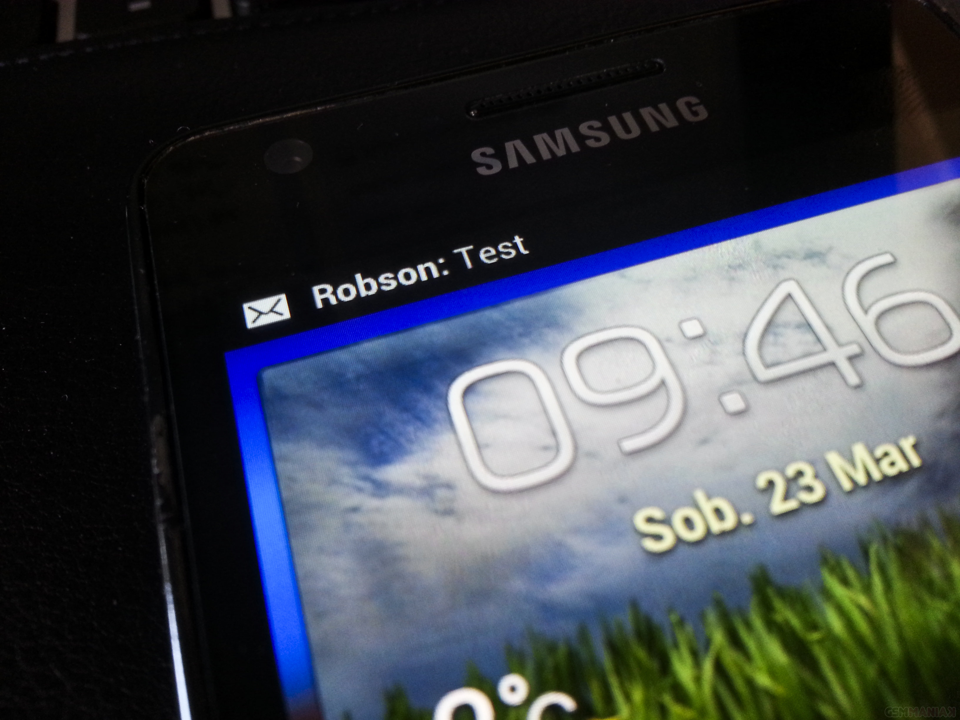 Apropo powiadomień. Domyślnie jest włączona funkcja, którą oczywiście można wyłączyć, prezentująca nadawcę oraz treść wiadomości na pasku powiadomień (czarne tło gdzie znajduje się zegar oraz stan naładowania baterii).
