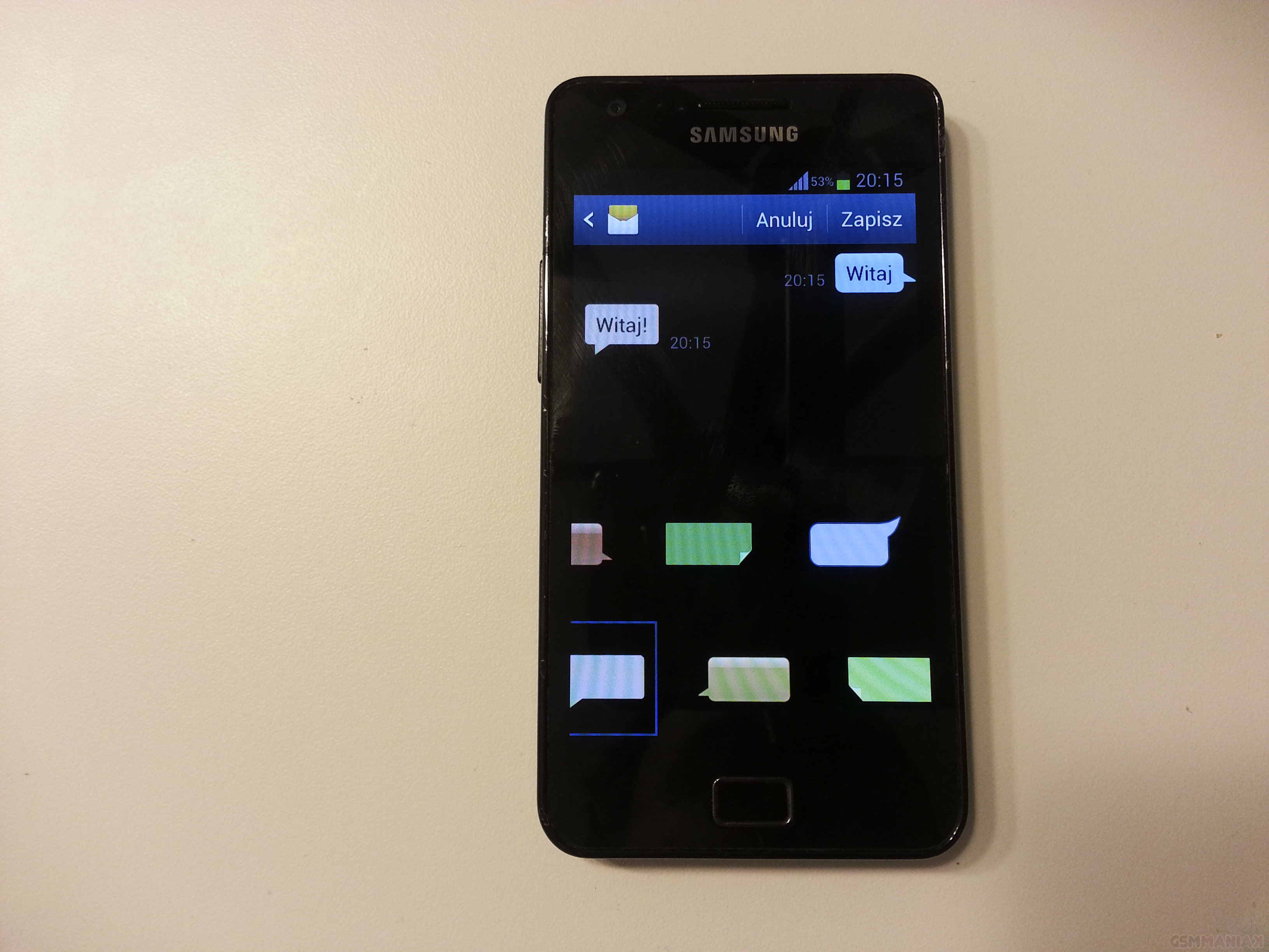 Ze względu na popularność i powrzechność Samsunga Galaxy S 2 to na nim właśnie prezentujemy cały cykl Android nie boli. W chwili obecnej najnowsza dostępna wersja Androida dla Samsunga Galaxy S 2 (Jelly Bean 4.1.2) daje nam możliwość personalizowania wyglądu okna wiadomości. Możemy zmieniać kształty i kolory dymków, które prezentują tekst rozmowy czy też tło. O ile przyjemniej jest wymieniać wiadomości np. na kartce papieru, niż na czarnym przygnębiającym tle.