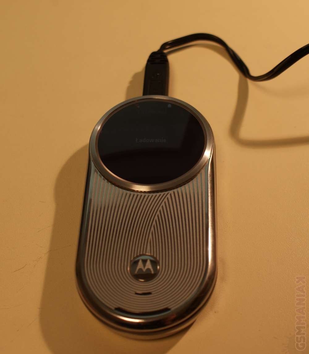 Na przednim panelu, pod ekranem, znajduje się znaczek Motoroli oraz wbudowany głośnik. Po bokach telefonu mamy przyciski do kontroli głośności (z lewej strony) oraz dwa owalne zaczepy, których wciśnięcie umożliwia ściągnięcie pokrywy baterii. U góry Aury znajduje się pojedynczy port miniUSB, do którego możemy podłączyć ładowarkę sieciową, zestaw słuchawkowy lub przejściówkę na microUSB. Jak już wcześniej wspomniałem, pod górną częścią obudowy znajduje się klawiatura alfanumeryczna. Jej, wykonane z metalu, przyciski w zasadzie działają bardzo poprawnie. W całej klawiaturze rażą tylko bardzo małe przyciski „OK” i „Wstecz”, co wpływa niekorzystnie na sprawne i bezwzrokowe przemieszczanie się po funkcjach telefonu.
