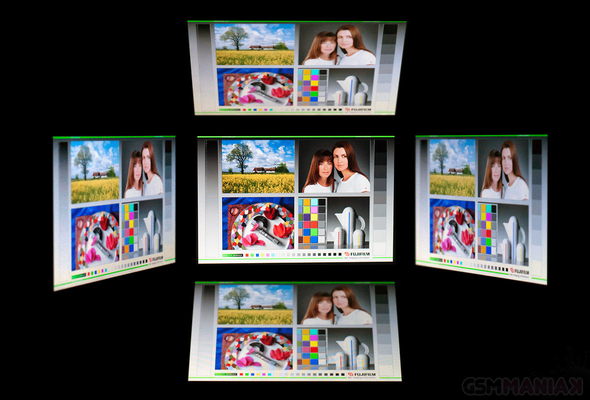 Przy matrycach IPS kąty widzenia powinny być dobre z założenia. MONSTER radzi sobie najlepiej w zakresie horyzontalnym. Patrząc na monitor z góry lub z dołu, widać już jednak pewne blaknięcie barw. Zaletą jest natomiast technologia in-cell, umożliwiająca ulokowanie monitora w niewielkiej odległości od szkła ochronnego (pozbawionego powłoki Gorilla Glass).