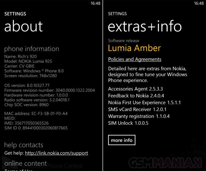 Na pierwszy rzut oka rzuca się wielki napis „Lumia Amber” co świadczyć może o specjalnej wersji systemu dla serii smartfonów od Nokii. Z dalszych nowości można zauważyć funkcje jak: „Glance”, biznesowego klienta email od IBM, „obróć, aby wyciszyć”, Nokia SmartCam (aplikacja wykonująca serię portretowych zdjęć, a następnie wybierająca te, na którym dane osoby wyglądają najkorzystniej) oraz długo wyczekiwane Radio FM.