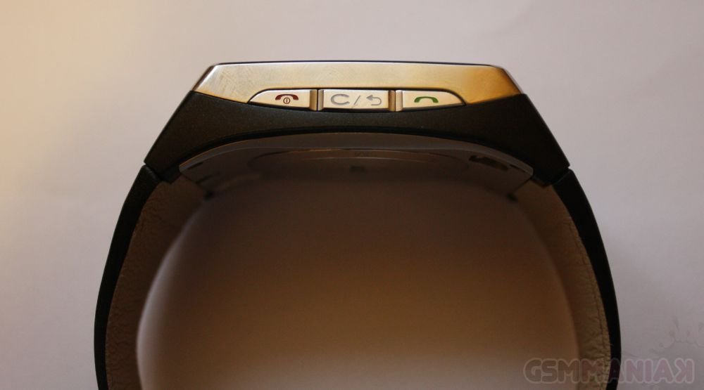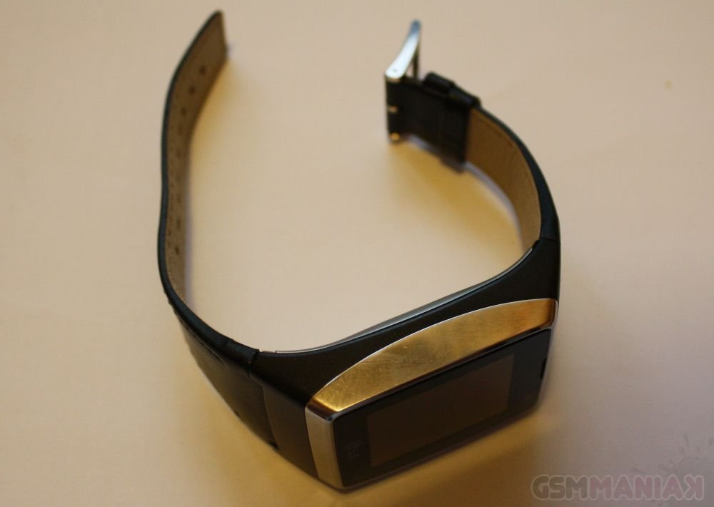 Obudowa GD910 cechuje się dużą wytrzymałością i idealnym spasowaniem jej poszczególnych części. Została ona wykonana ze srebrnego metalu (obwódka górnej części telefonu) oraz czarnego, odpornego na zarysowania plastiku. Ponadto, cały przedni panel chroniony jest warstwą hartowanego szkła. Nie wolno jednak zapomnieć, że mamy do czynienia z telefonem stylizowanym na zegarek i podczas noszenia go na ręku nie sposób uniknąć drobnych rysek na wyświetlaczu. Całość dopełnia wykonany ze skóry pasek, który niestety zapinany jest tylko na zwykłą klamerkę (nie ma żadnego mechanizmu blokującego).