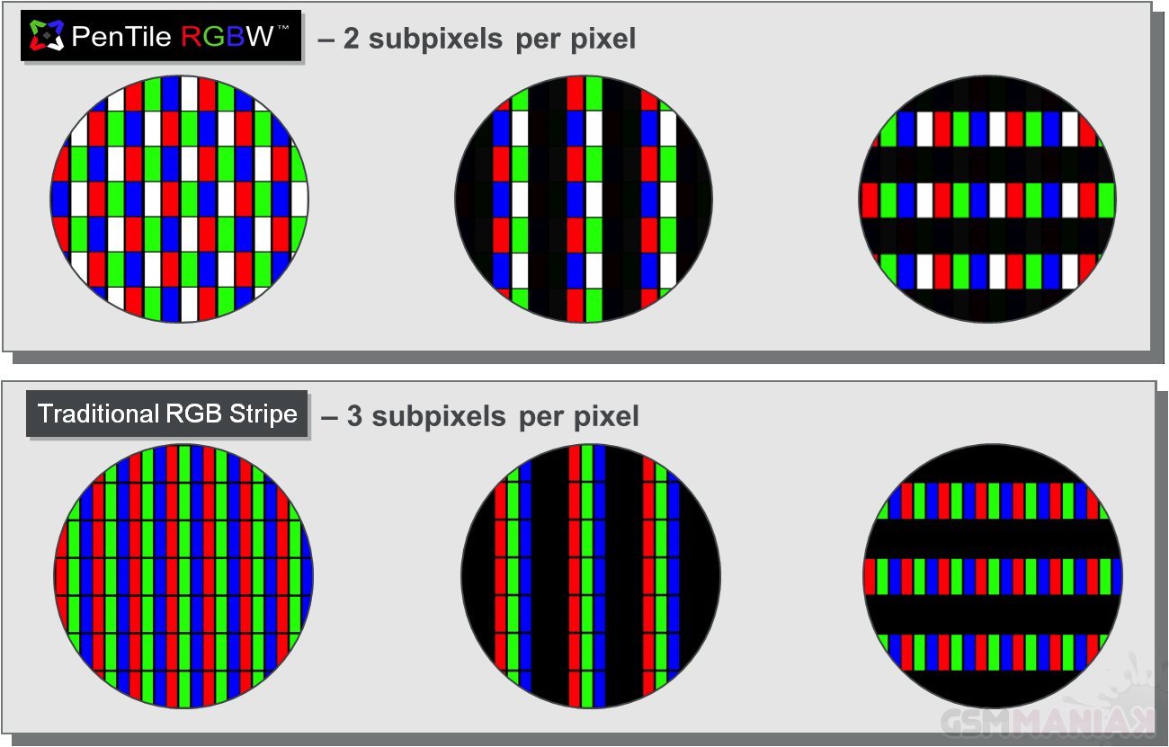 Matryca Pentile (dwa subpiksele składające się na jeden piksel) i RGB (trzy subpiksele) / fot. Talk Android
