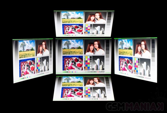 Jak widać, jasność maksymalna stoi na poziomie 324 cd/m2 – przyzwoitym, ale nie jest to nic szczególnego. Jasność minimalna, przydająca się do oszczędzania baterii i/lub czytania w nocy, mieści się w średniej. Kąty widzenia są w porządku; mamy tu w końcu do czynienia z matrycą IPS, dlatego też trudno oczekiwać innych rezultatów. Urządzenie pozwala na komfortowe przeglądanie treści niezależnie od ustawienia, choć przy skrajnym odchyleniu widoczny jest spadek kontrastu. Niewielki, ale zawsze.