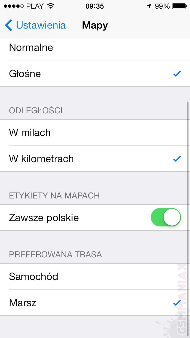 Jeżeli korzystasz z map Apple’a (a działają one coraz lepiej), to w ustawieniach możesz określić preferowany tryb wyznaczanej trasy: samochodem lub marszem. Choć oczywiście można między tymi trybami przełączać bezpośrednio przy wyznaczaniu trasy w aplikacji, to opcja automatycznego określenia jest jak najbardziej przydatna.