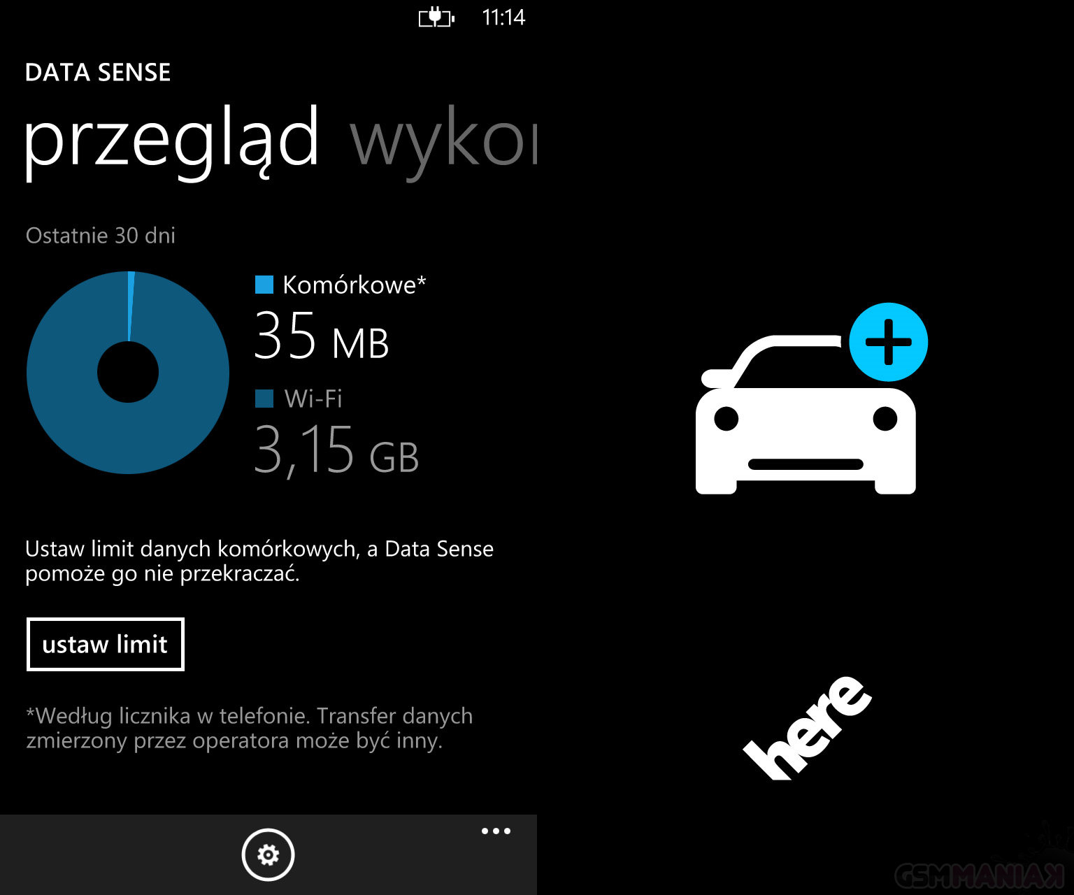 W Lumii 1020 znajdziecie też aplikację Data Sense, której zadaniem jest sporządzanie raportów dotyczących wykorzystania internetu mobilnego i przez Wi-Fi. System sprytnie segreguje transfer wśród poszczególnych aplikacji, pokazując, która z nich najbardziej zużywa cenne megabajty.