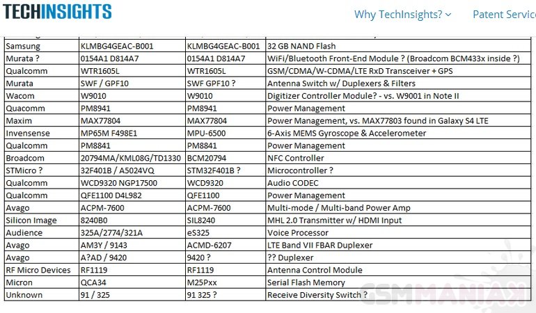Według informacji dostarczonych przez serwis techinsights, zaimplementowane podzespoły wycenione zostały na 232 dolary. Co ciekawe na te dodatkowe dwadzieścia dolarów składa się: nowy digitizer dostarczony przez firmę Wacom, nowy stylus S-Pen, znacznie lepszy, a przy tym większy wyświetlacz Super AMOLED, 3-gigabajtowa pamięć LPDDR3 RAM, 32 GB wewnętrznej pamięci, bardziej wydajna jednostka obliczeniowa, czy tez złącze MHL w standardzie 3.0.