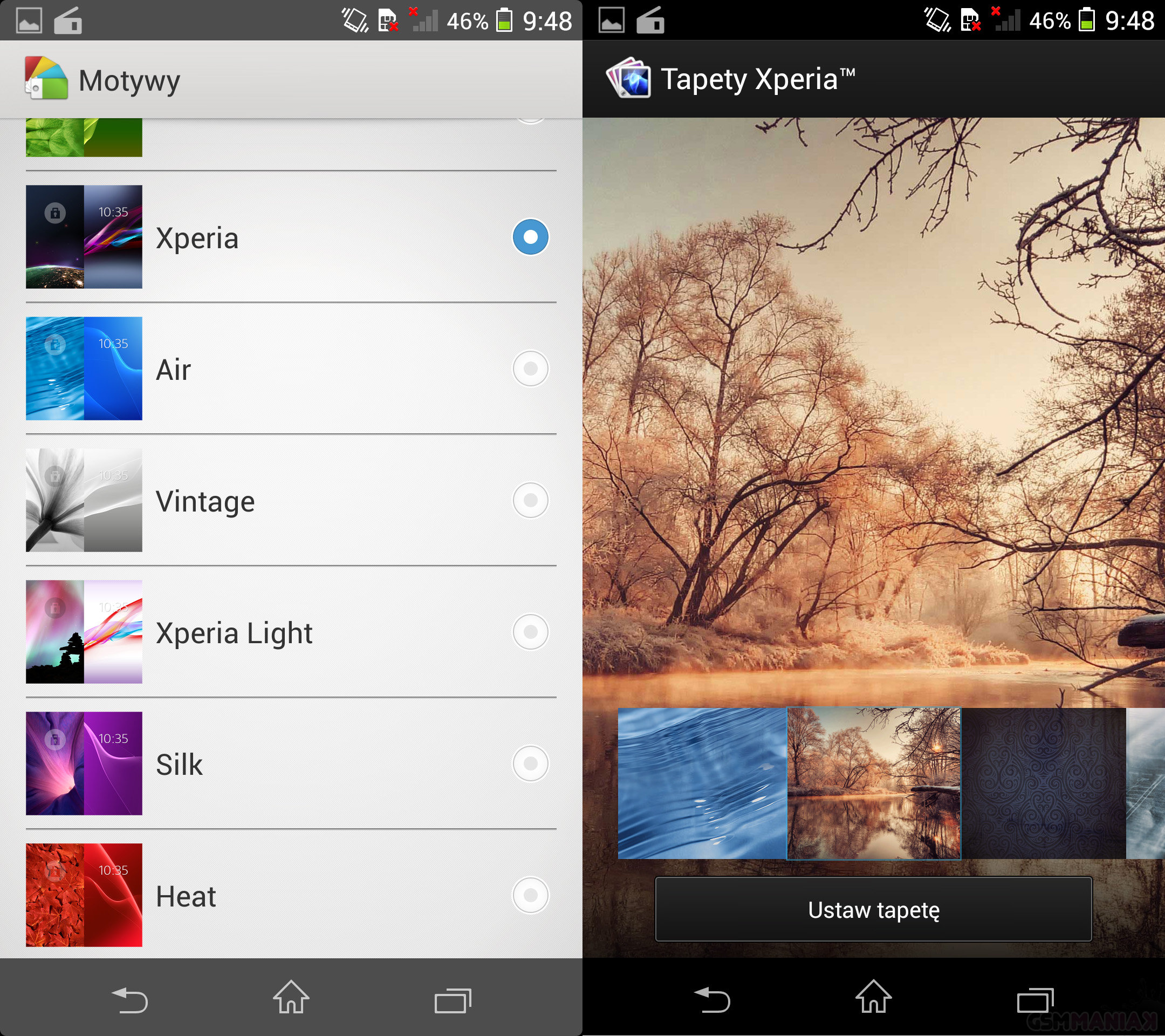Spośród preinstalowanych tapet możemy wybrać albo grafikę statyczną, albo prostą animację. Jest tego trochę – Sony skupiło się na przyjemnych wizualnie, kolorowych obrazkach. Gdybyście natomiast szukali większego zbioru teł, to szczerze polecam serwis Kuvva. Pełno tam tego.